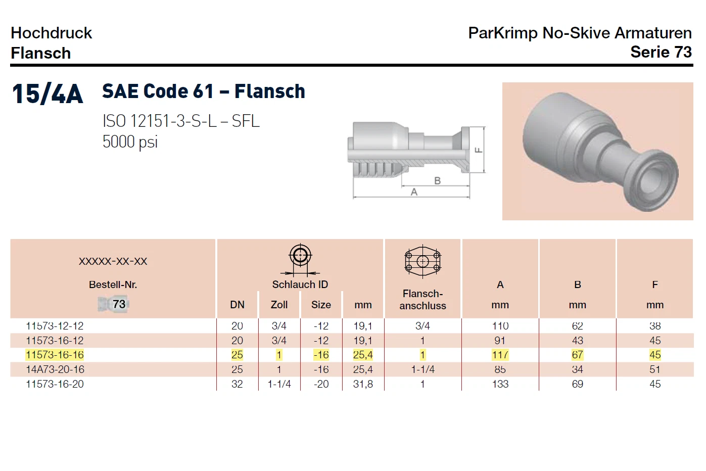 PARKER 11573-16-16 No-Skive Armatur / Flansch... mehr